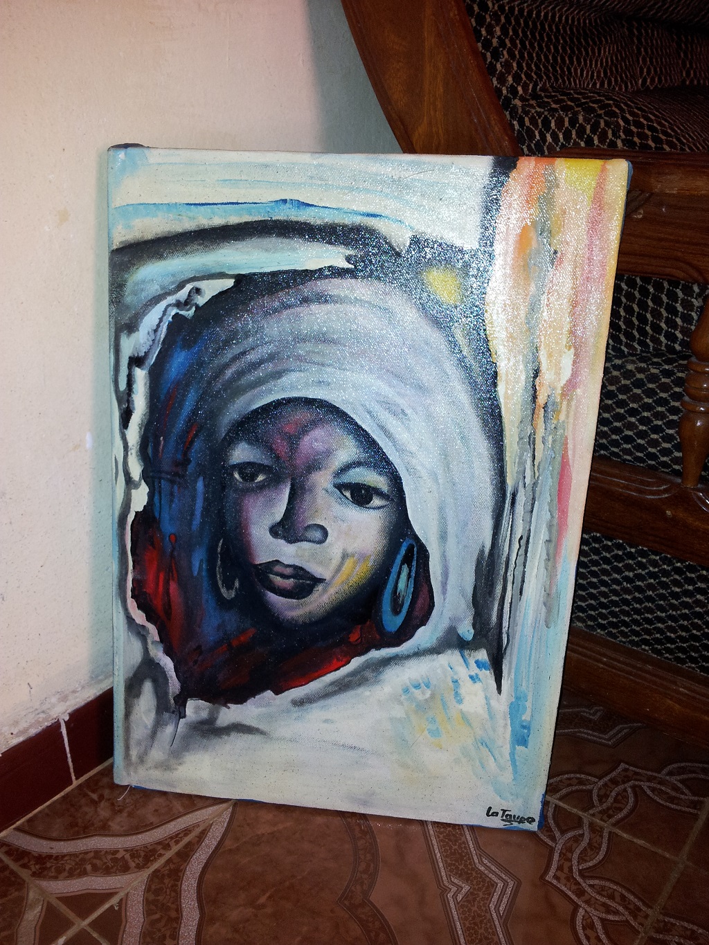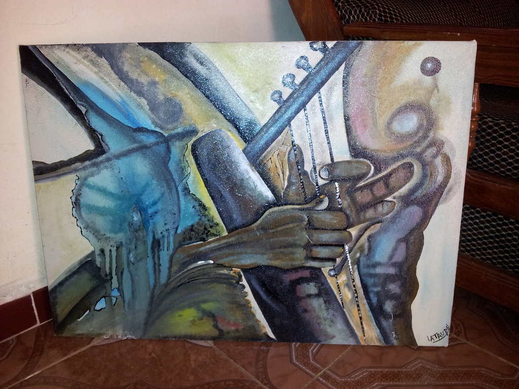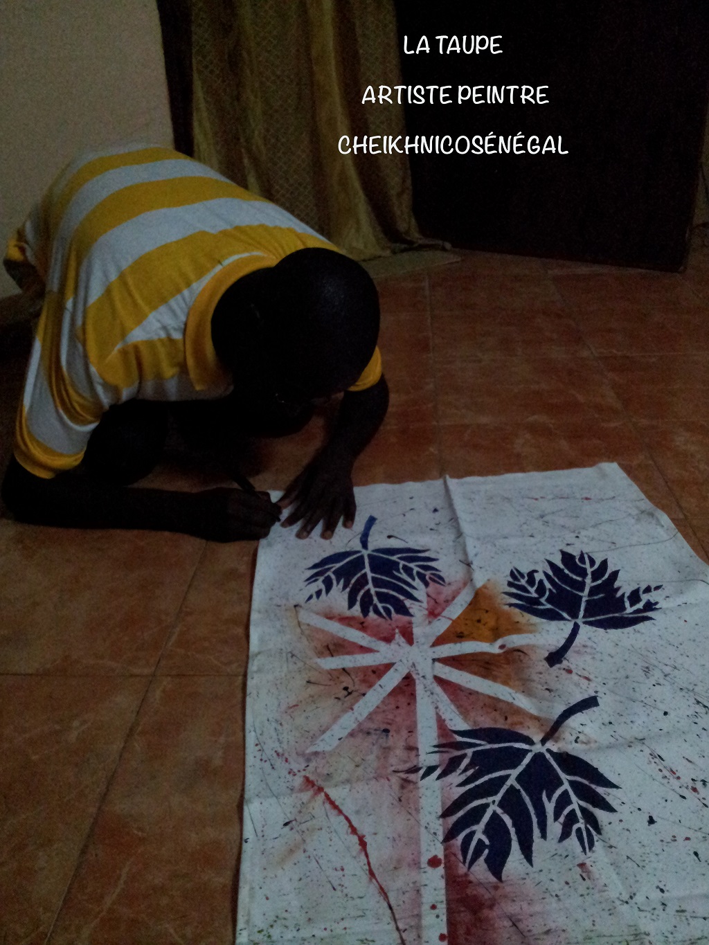 Qu’il peigne sur une toile, une calebasse, un vêtement, chaque objet est unique et personnalisé. vous lui exprimez vos idées, vos choix de couleurs, il vous crée ce que vous attendiez.