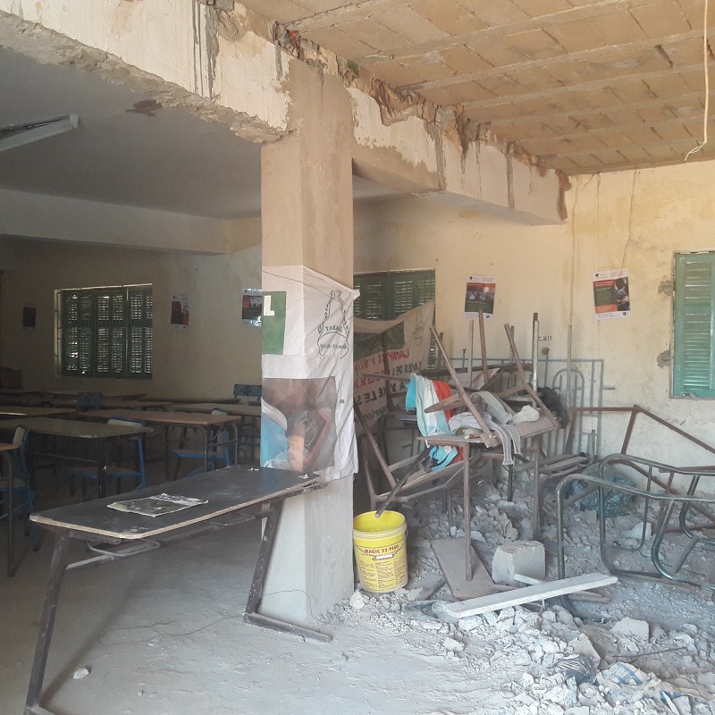 L’école est également en cours de travaux sur la salle annexe à la bibliothèque: réfection des piliers et du plafond de cette salle. Pour le moment vision  un peu apocalyptique de cet espace en travaux !.  Vivement les photos de fin de chantier!.
